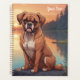 Cute Boxer Dog sitting by a lake at sunset. Puzzles, planners, notebooks ornaments tiles phone cases more.with this design in my stores. Add this image to other products. Add your own text too. Change background colour. Lots of pets in my store.