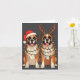 Boxer Dog Christmas Santa Hat Reindeer Lights Paja Card