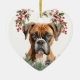 Boxer Dog Holly Wreath Christmas Ceramic Tree Decoration