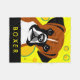 Fun Boxer dog art with light orange circles and yellow background colour, breed name printed on black background
