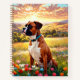 Boxer dog in beautiful field of flowers with sunset. Puzzles, puzzles in tins, planners, notebooks with this design in my stores. Add text to personalize.. Lots of pet and scenery designs in my stores. Add this design to other products. Add text.