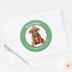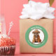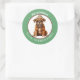An image of an adorable little Boxer Dog puppy dog wearing his winter hat and scarf is at the centre of this cute Holiday sticker. The image is framed in a circular green border which contains your custom text in white. Perfect for Christmas cards, correspondence, and gift packages.