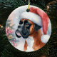 Boxer Dog Santa Hat Christmas Ceramic Tree Decoration