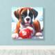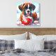 Boxer Puppy Playing in Snow with a Red Toy Ball Canvas Print