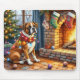 Boxer Sitting by Fireplace with Christmas Lights Mouse Mat