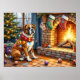 A festive Christmas artwork featuring a loyal Boxer sitting beside a warm fireplace adorned with stockings and sparkling Christmas lights. This cozy holiday scene captures the Boxer’s playful energy and affectionate nature, making it a wonderful addition for dog lovers and Christmas decor enthusiasts. Celebrate the joy and warmth of the holidays with this heartwarming pet-inspired artwork.