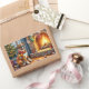 Boxer Sitting by Fireplace with Christmas Lights Rectangular Sticker