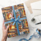Boxer Sitting by Fireplace with Christmas Lights Wrapping Paper