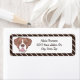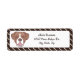 This return address label features a cute boxer on a cream centre, with a dark brown & cream diagonal striped background. The text on this label can be customised and used as either a return address label or can be used as a gift tag!