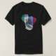 I give wanted to give this a 4 instead of a 5 because these Basic DARK T0shirts run unexpectedly SLIM or Narrow. Which is great if you do not have a potbelly, but I have a paunch. It isn't the shirt's fault that I've got a beer belly. The design and shirt itself is a quality cotton shirt. The color is more of a deep purple, but still a very pretty color. The Basic DARK T-shirts run a bit SLIMMER than the Basic Ts. The neck is a fraction narrower (or seems to be narrower) also. I'm a paunchy middle-aged woman and my neck is 12 inches (31cm) thick and the neckline fell about the same as in the photo of the man, and I had the desire to tug it a bit. So if you're a thick necked man or like loose shirts, be aware these are slimmer shirts. Once I get rid of my lockdown paunch it'll look great. The shirt washed well in cold water with no apparent bleeding. We don't have a dryer, so it hung dry. Did not shrink. Love the colors and the design. The design looks smaller on my shirt than it does on the model on-line. But still, it looks good on the shirt. The printing looks as it does on the model, just the size seems fractionally smaller. Washed garment in cold water, hung dry and design appeared unaffected.