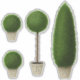 This is a set of 4 pretty Boxwood topiaries with two ball topiaries, one ball standard and a conical shrub. Each planter has space for a monogram of letters to spell out a name our word.