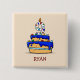There is a number 9 candle filled with colorful candies on the top of a blue icing cake on the front of this cute gift, souvenir, giveaway or party essential. Perfect to send any special boy celebrating his 9th birthday.