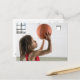 Boy aiming a shot with a basketball in a school postcard