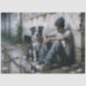 Boy and Dog Rainy Urban Stillness decoupage tissue paper captures a deeply personal moment of a young boy resting against a worn wall while his attentive dog sits close beside him on rain-darkened pavement. Cool gray tones, damp textures, and expressive brushwork evoke quiet resilience and unspoken companionship. This design is especially suited for decoupage furniture, memory pieces, journals, mixed media art, or projects that honor vulnerability, patience, and emotional truth.