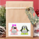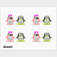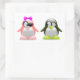 A cute image of a boy and girl penguin. The girl penguin has a pink bow and pink feet. The boy penguin has lime green feet. Children would love these stickers. Perfect for yourself or as a gift.