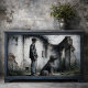 Boy and Loyal Dog in Ruins Blue Gray decoupage tissue paper features a painterly, atmospheric scene of a young boy standing beside his loyal dog inside weathered brick ruins. Soft blue-gray tones, distressed textures, and a nostalgic European mood give this design a timeless, emotional quality. Ideal for furniture restoration, mixed media art, journals, trays, or vintage-inspired craft projects where story, stillness, and companionship matter.