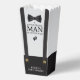 Welcome your distinguished little gentleman in style with these cool baby shower popcorn boxes for baby boys. Designed with a formal baby bodysuit adorned with suspenders and a fancy bowtie, these boxes are the perfect table setting for your upstanding young man. Personalize it with your event details for a luxury event that is uniquely yours.