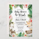 Celebrate the upcoming arrival of your precious baby boy with this elegant, chic and pretty 'Baby Shower by Mail Invitation' featuring cute friendly jungle safari animals with masks on beautiful watercolor tropical florals with greenery jungle leaves background. This template is perfect for those who live a long distance from loved ones, but still wish to make it special for mother or parents to be by showering them with love and gifts. All the texts are pre-arranged for you to personalise easily and quickly with your baby shower details.