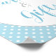 This blue baby shower sign is perfect for the cards and gifts table at a boy's baby shower. It features a cute grey baby elephant silhouetted on a grey-bordered white oval. The text is in blue script font. The blue polka dot pattern background is bisected by a grey ribbon design with a dashed white border to simulate stitching. See our collection for matching items.