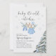 Celebrate the joy of a winter baby shower with our charming Boy Baby Shower invitation, featuring a delicate watercolor design where soft blue baby clothes hang adorably on a clothesline above a snow-covered evergreen tree decorated with matching blue ornaments. The elegant handwritten script adds a cozy, heartwarming touch, while the frosty snowflakes and gentle pastel tones create a magical winter atmosphere that beautifully captures the tenderness and excitement of welcoming a baby boy during the coldest season.
