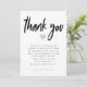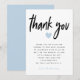 Simple baby shower thank you card with a ready-made message in place for your boy baby shower. The text at the top says "thank you" in modern script font with a blue heart under it. You can change the wording of the text and add your name at the bottom.