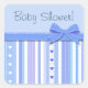 Cute blue and white stripe pattern with a blue bow and ribbon. Great for a baby boy shower, birthday or other special occasions. This also come in pink for a baby girl.
