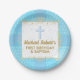 Boy Baptism 1st Birthday Blue Gold Text Polka Dot Paper Plate