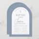 Boy Baptism Dusty Blue White Arch Script Modern Invitation