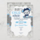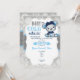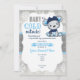 Baby It's Cold Outside! Personalised Double-sided Winter Blue, Navy and Grey Boy Teddy Bear Baby Shower Invitation to celebrate the arrival of new baby boy in this winter season! Very cute bear in hat and scarf in the winter hat design.
