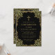 This elegant black and gold confirmation invitation with a vintage air, recommended for a boy, has an ornate faux gold foil frame with gold leaves on a black background. Above the text there is a religious cross in faux gold foil. All text can be personalised and has a golden yellow colour similar to the faux gold frame.