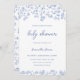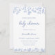 Boy Dusty Blue Floral Chinoiserie Baby Shower Invitation