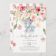 Cute baby elephant and mum with a springtime floral drop of pink & yellow peonies & roses boys baby shower invitation.