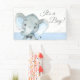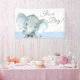Boys elephant baby shower banner with adorable baby boy elephant with a black bow tie on a blue polka dot background. This cute elephant baby shower banner is easily customised with the text of your choice.