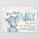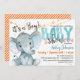 Boy Elephant Baby Shower invitation Blue & Orange
