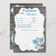 Very cute Blue Boy Elephant/moon, cloud Baby Shower Predictions and Advice Card with stars and wooden background. All fields are editable.