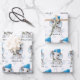 Cute, personalised giftwrap for a baby boy or toddler boy for winter baby showers or Christmas gifts featuring a baby boy elephant wearing a blue stocking cap and holding a pine branch surrounded by blue snowflakes. ASSISTANCE: For help with design modification or personalisation, colour change, resizing, transferring the design to another product or if you would like coordinating items, contact the designer BEFORE ORDERING via the Zazzle Chat MESSAGE tab below or email makeitaboutyoustore@gmail.com.