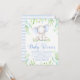 Boys elephant baby shower invitations with sweet watercolor baby elephant on a palm leaf and blue watercolor stripe background. These boy elephant baby shower invitations are easily customised for your event by simply adding your event details in the font style and wording you prefer.