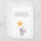 This adorable baby shower invitation features a boy elephant being flown by blue heart balloons with elegant script and modern text for your details. Back features elephant holding a star balloon and text for a book request, or can be deleted for a clean look. Easy to customise by clicking "Personalise".