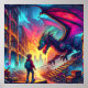 Boy Encounters a Dragon in a Dystopian World Poster