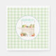 Cute farmer's market themed napkins with gingham and a vegetable stand.