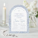 Boy First Communion Blue White Floral Pattern Arch Invitation