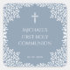 Boy First Communion Dusty Blue White Leaves Cross Square Sticker