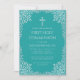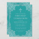 Boy First Communion Teal Elegant Silver Leaves Invitation