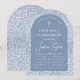 Boy First Holy Communion Blue Arch Floral Pattern Invitation