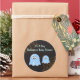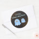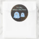 Add this fun range of spooky Halloween baby shower sticker labels to all your party favours, stationery or gifts. The round shaped stickers offer two little blue ghosts, a mummy and baby ghost as the central images on the stickers along with orange spiders webs to the top right and bottom left of the stickers. The images have been combined with a dark brown dimpled background with the wording placed to the top of the stickers. All The wording can be personalised with your own Halloween baby shower party details. Great for an It's A Boy Halloween baby shower party celebration.