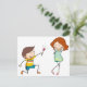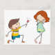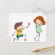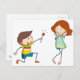 Boy giving flower to girlfriend postcard