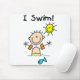 A boy stick figure swims with the fish and the sun smiles down on him on this colourful and cute stick figure boy I Swim bag that's customisable so you can add a name