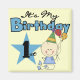 Baby's first birthday T-shirts, bodysuits, cards, stickers, magnets, bags, and other first birthday apparel and gifts featuring a baby boy in a blue diaper and party hat, a big star, and balloons!