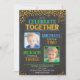 Celebrate in style with this elegant and fun Joint Birthday Invitation with Photo! Featuring a chic chalkboard-style background, sparkling gold confetti, and bold “Let’s Celebrate Together” lettering, this design is perfect for two special birthdays in one unforgettable event. The layout includes space for two photos, making it ideal for siblings, or best friends celebrating together.