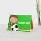 Sporty modern graphic boy with football after party thank you card. Personalise this card with the thank you message of your choice. Original design by Sarah Trett.